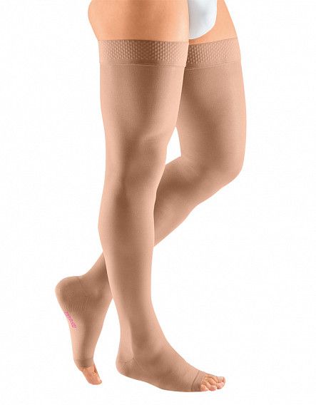 Компрессионные чулки 3-ого класса компрессии mediven plus с открытым носком и силиконовой резинкой как универсальное решение в лечении заболеваний вен.