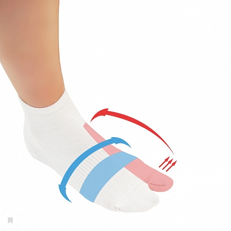 Специальные носочки комфортно устанавливают большой палец стопы в физиологически правильное положение, что помогает снизить боль и воспаление в области сустава большого пальца стопы, уменьшить усталость и дискомфорт при ходьбе, предотвратить дальнейшее развитие заболевания и рост «косточки».